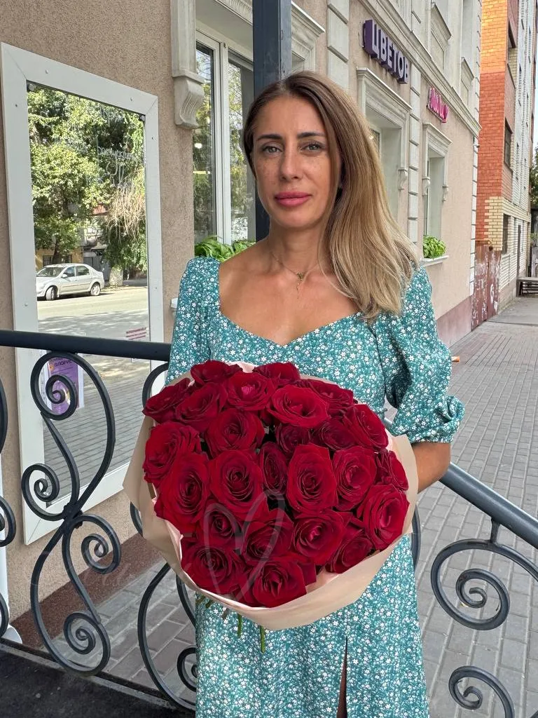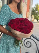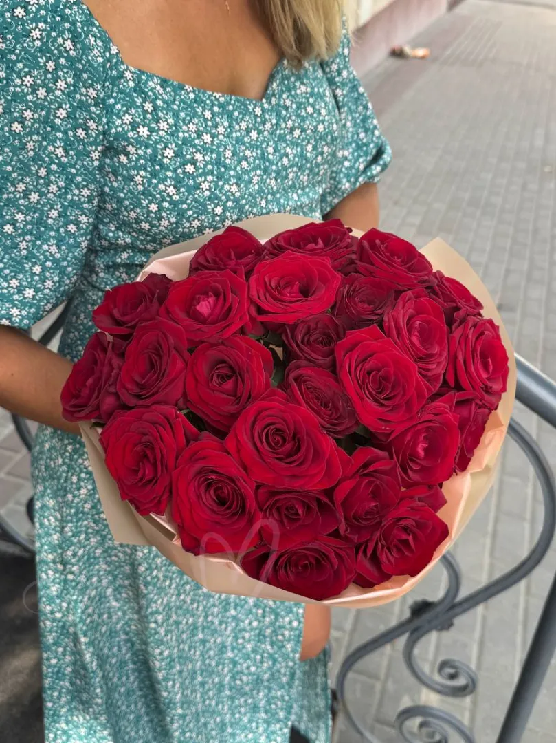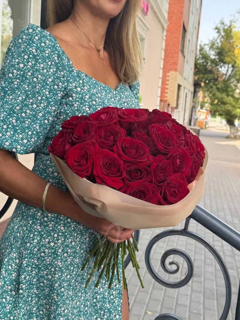 Классический букет бордовых роз, как искреннее признание в любви, наполнен страстью и теплом. Каждая роза символизирует чувственность и нежность, превращая любой момент в волшебство.