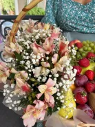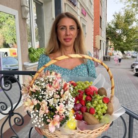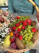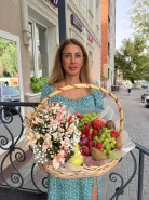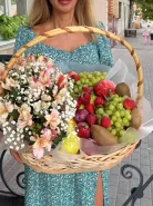 Большая корзина с фруктами и цветами - полезный подарок