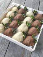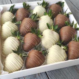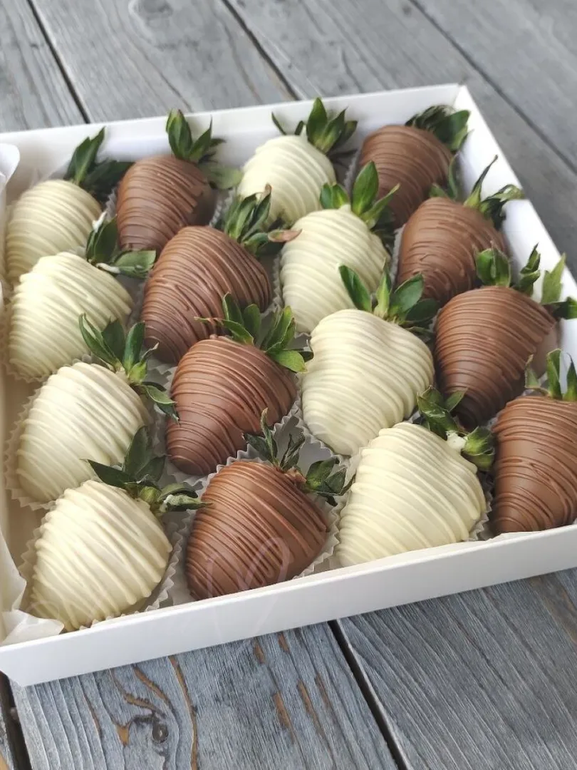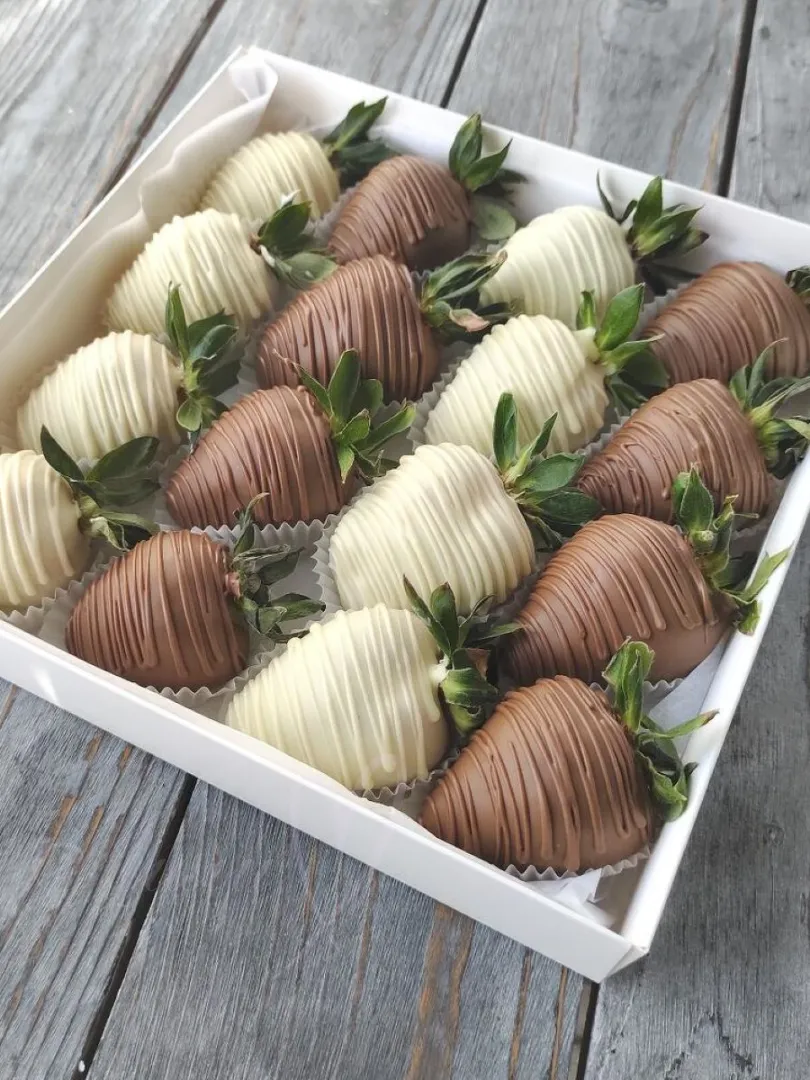 Отборная ягодка клубнички в белом и молочном шоколаде с минимальным декором, вкусно и эстетично! Дарите любимым эмоции и наслаждение