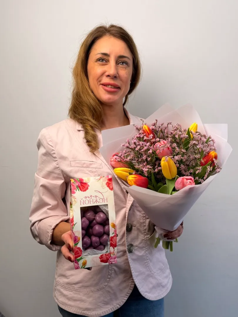 Откройте для себя букет «Наслаждение», идеально сочетающий яркие цветы и свежесть маракуйи. В набор входит изысканный лимониум, нежные тюльпаны и сублимированная маракуйя в шоколаде, создающие гармоничный вкус и аромат. Этот комплект станет отличным подарком для тех, кто ценит эстетику и свежие натюрморты. Цветы в наборе порадуют своей яркостью и долговечностью, добавляя уюта в любой дом. Упаковка выполнена в стильном дизайне и подчеркивает особую уникальность каждого элемента.