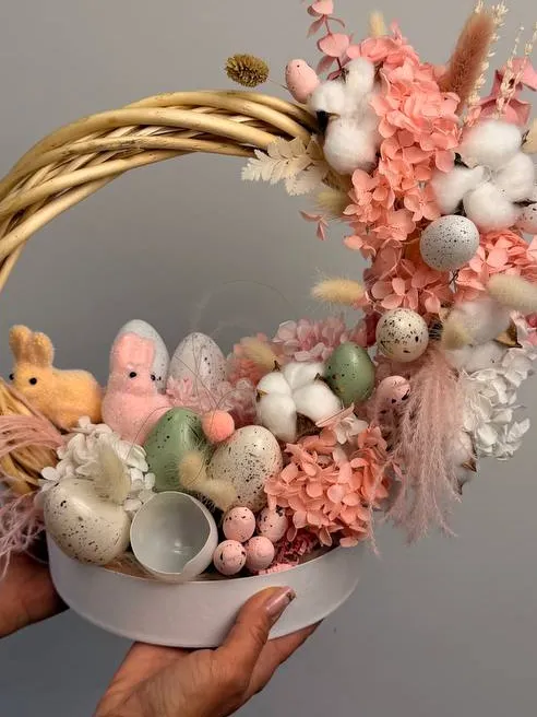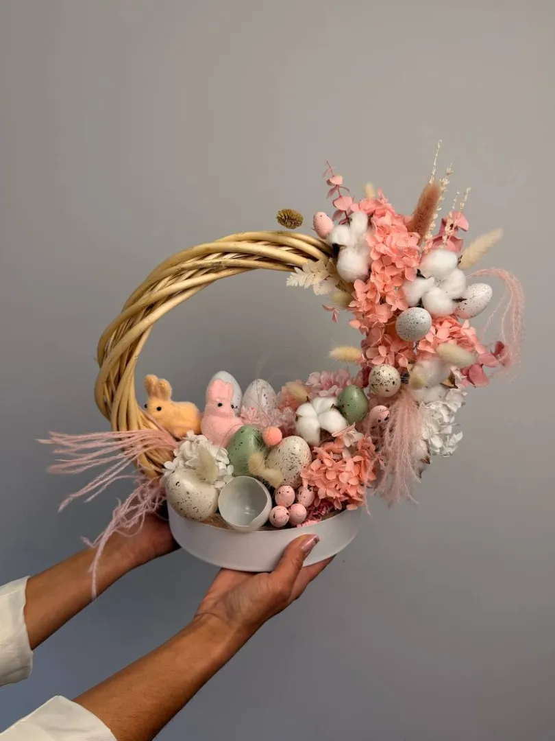 Пасхальный венок станет ярким и праздничным украшением вашего дома. Он выполнен из свежих и искусственных цветов, созданных с вниманием к деталям. Этот венок идеально подойдет для оформления двери, стены или праздничного стола. Его насыщенные цвета создадут атмосферу радости и весеннего обновления. Прекрасно гармонирует с пасхальной тематикой и станет оригинальным подарком. Украсьте свой дом этим красивым венком и создайте теплую праздничную обстановку.