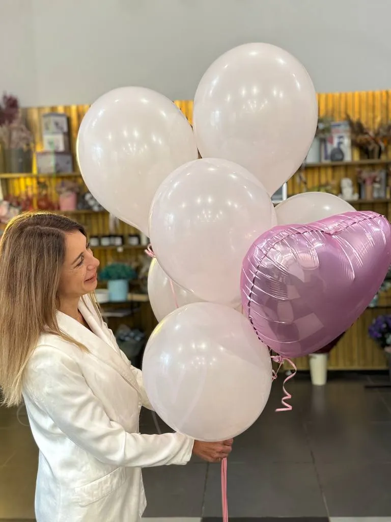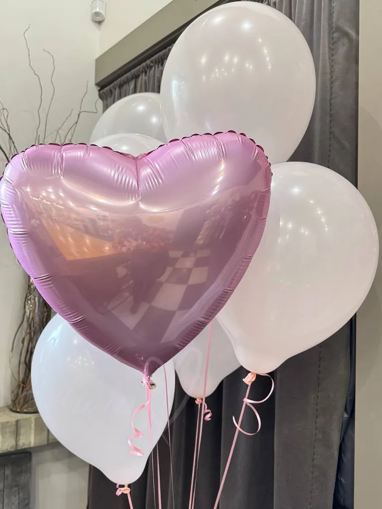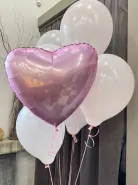 Фонтан из нежно розовых пастельных шаров - 6 шт и один фольгированный шар в форме сердца.