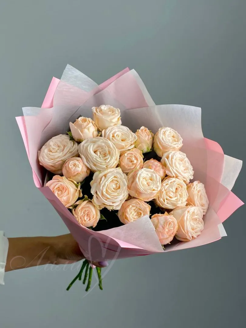 Кустовая роза нежного цвета в монобукете - прекрасная классика.