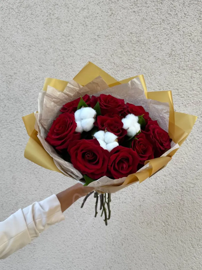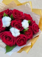 Красная роза Эквадор и нежный хлопок - просто идеальная пара.