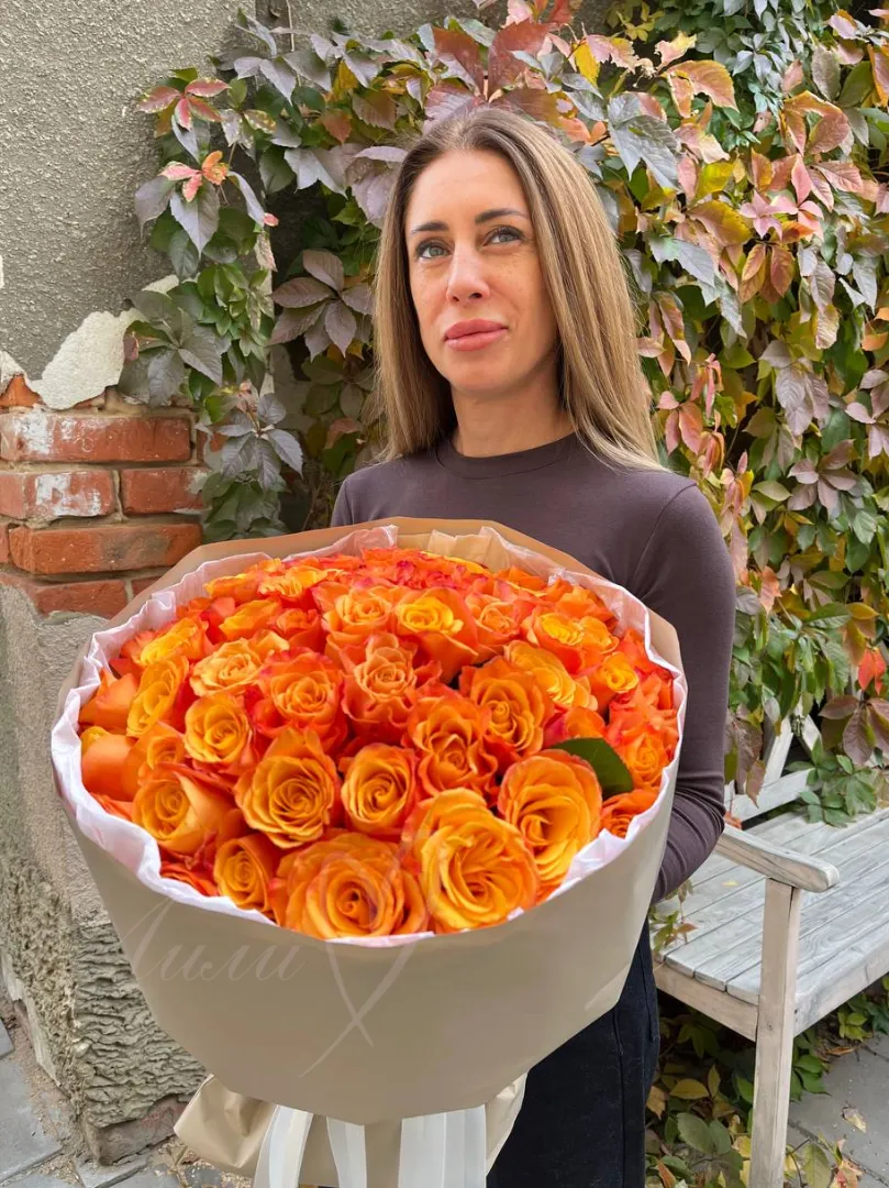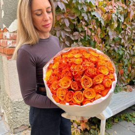 Яркий букет из роз в осенней цветовой гамме согреет и обрадует!