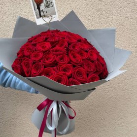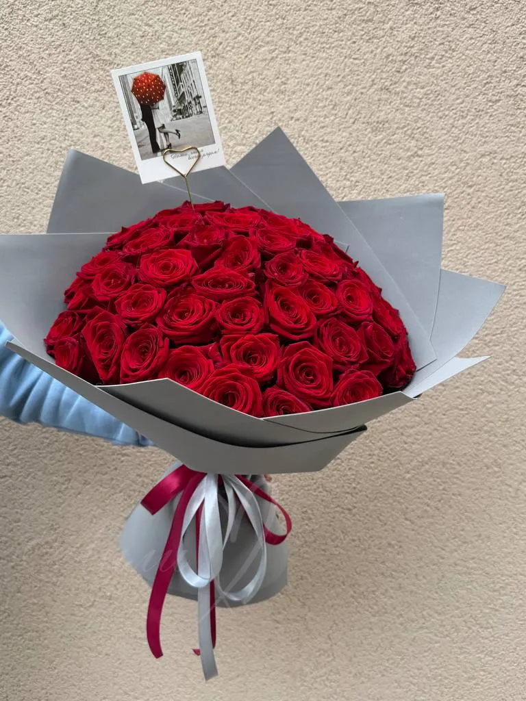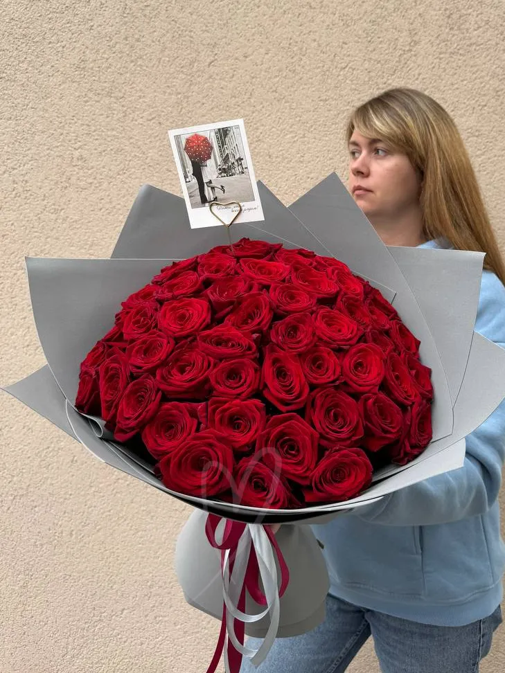 Классический букет из красных роз.На фото букет из 75 роз.