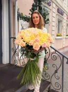 Создайте незабываемое впечатление с роскошным букетом из 101 нежной розы. Этот изысканный подарок, полностью состоящий из самых свежих роз, станет воплощением вашей заботы и внимания. Розовые оттенки лепестков подарят ощущение утонченности и романтики. Идеальный вариант для выражения глубоких чувств и особенных моментов. Подарите море комплиментов и счастливых улыбок с этим великолепным цветочным шедевром.