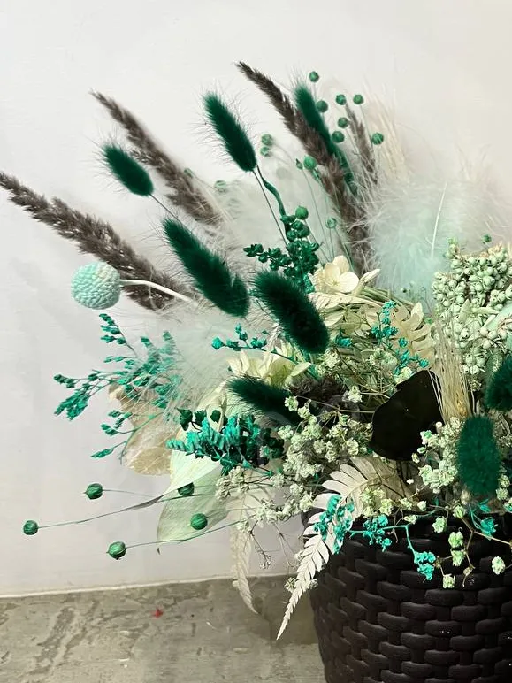 Композиция из радужного хлопка в сочетании с другими цветами.