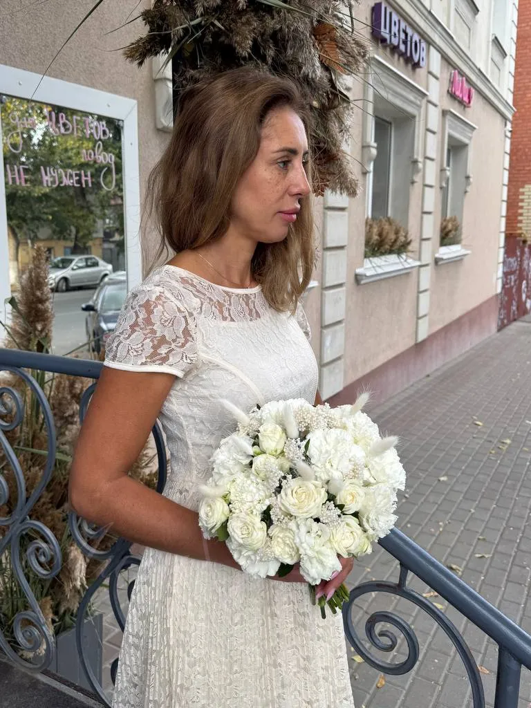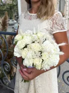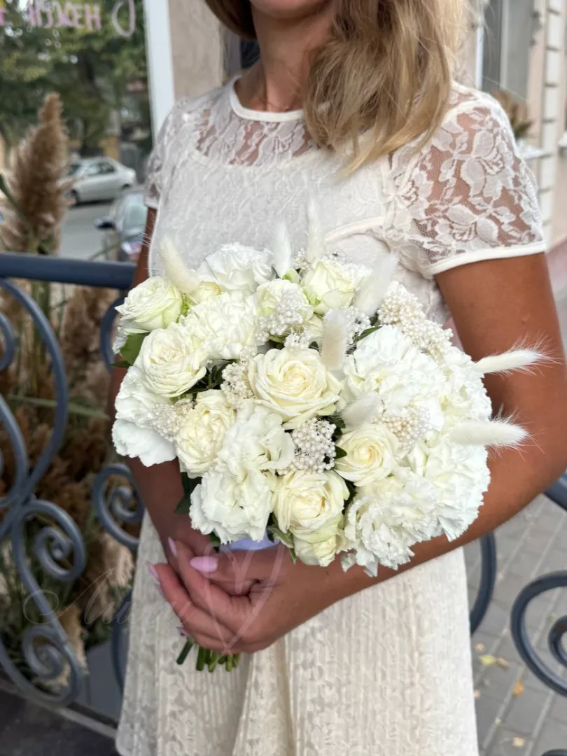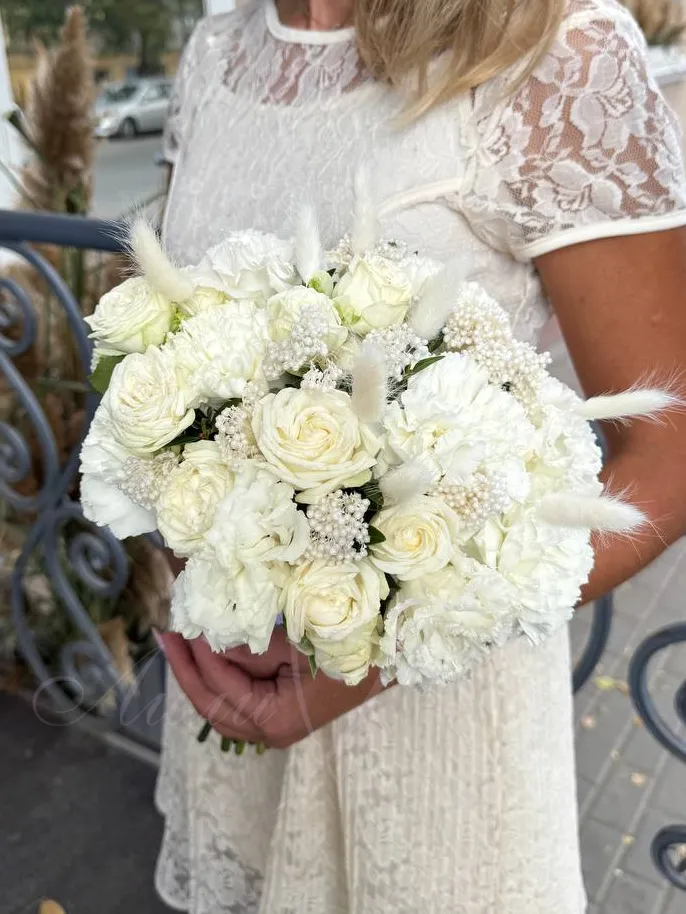 Воздушный букет невесты, в сочетании с белой розой, гвоздикой и эустомой