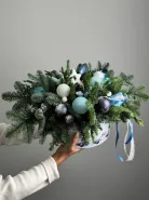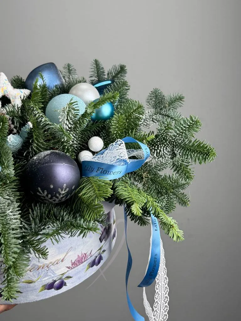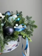 Композиция из живой пихты «Нобилис» с сине-голубой цветовой гамме