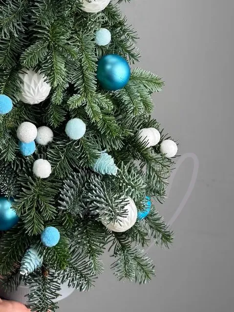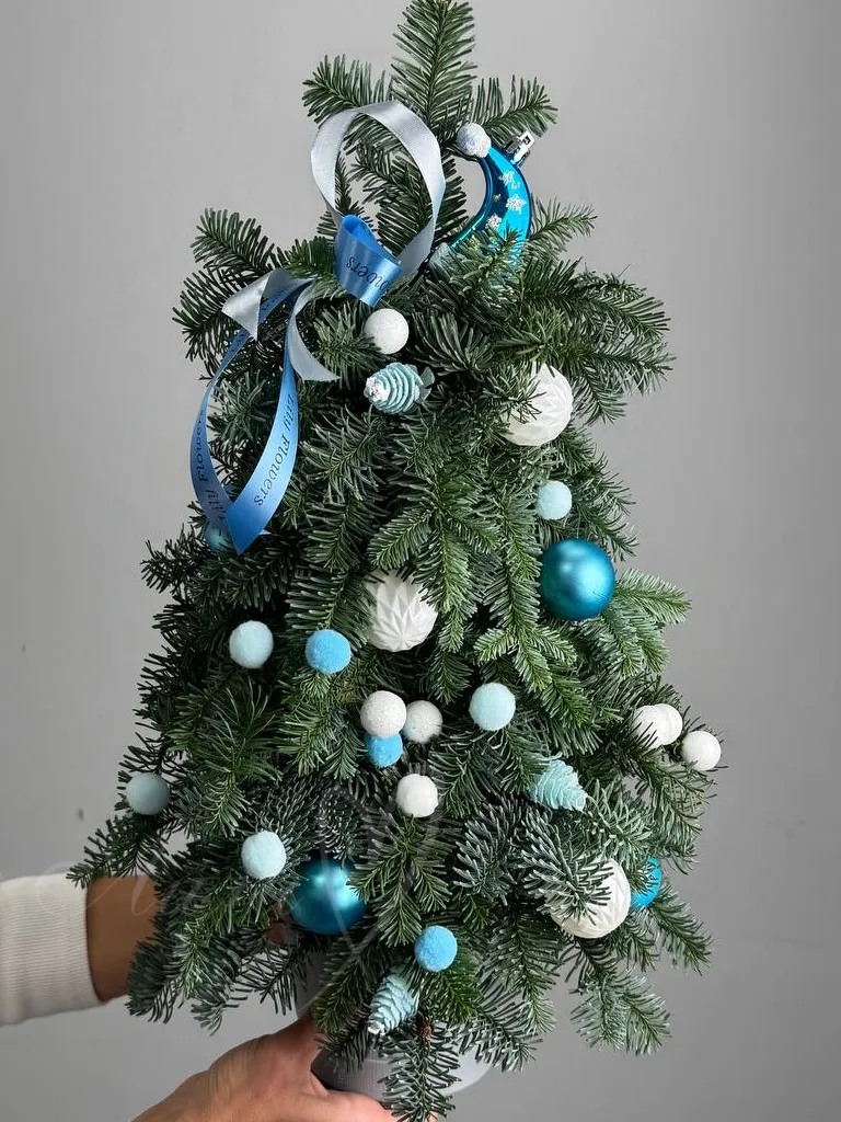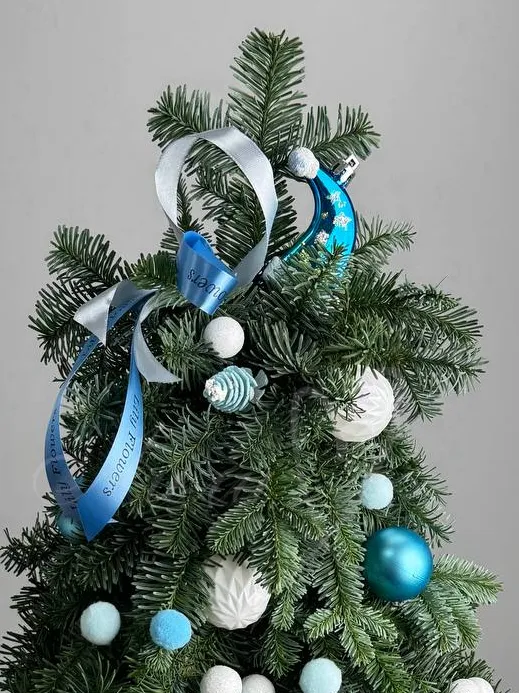 Элегантная елочка из нобилиса украшена стильными элементами, придавая вашему дому уют и атмосферу праздника.