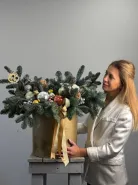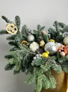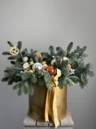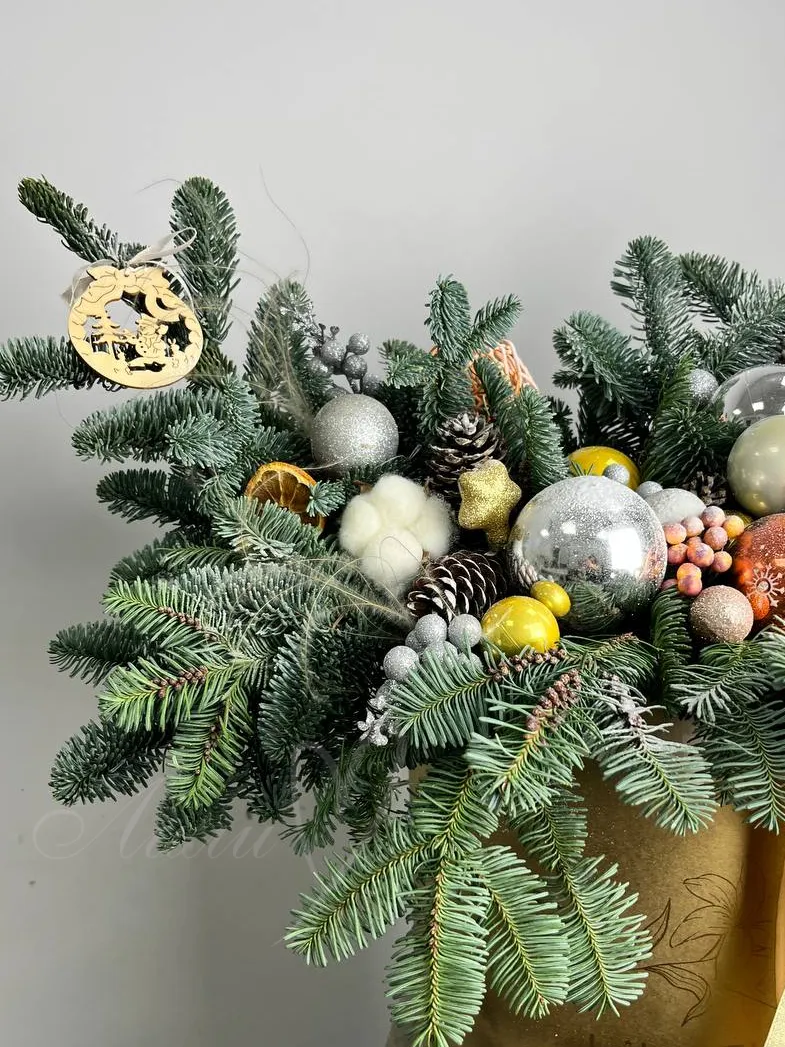 Эта изысканная и нежная композиция украсит пространство для новогоднего уюта, упакованную в стильное кашпо. Форма и дизайн букета делают его очень изысканным и элегантным подарком для особого человека.