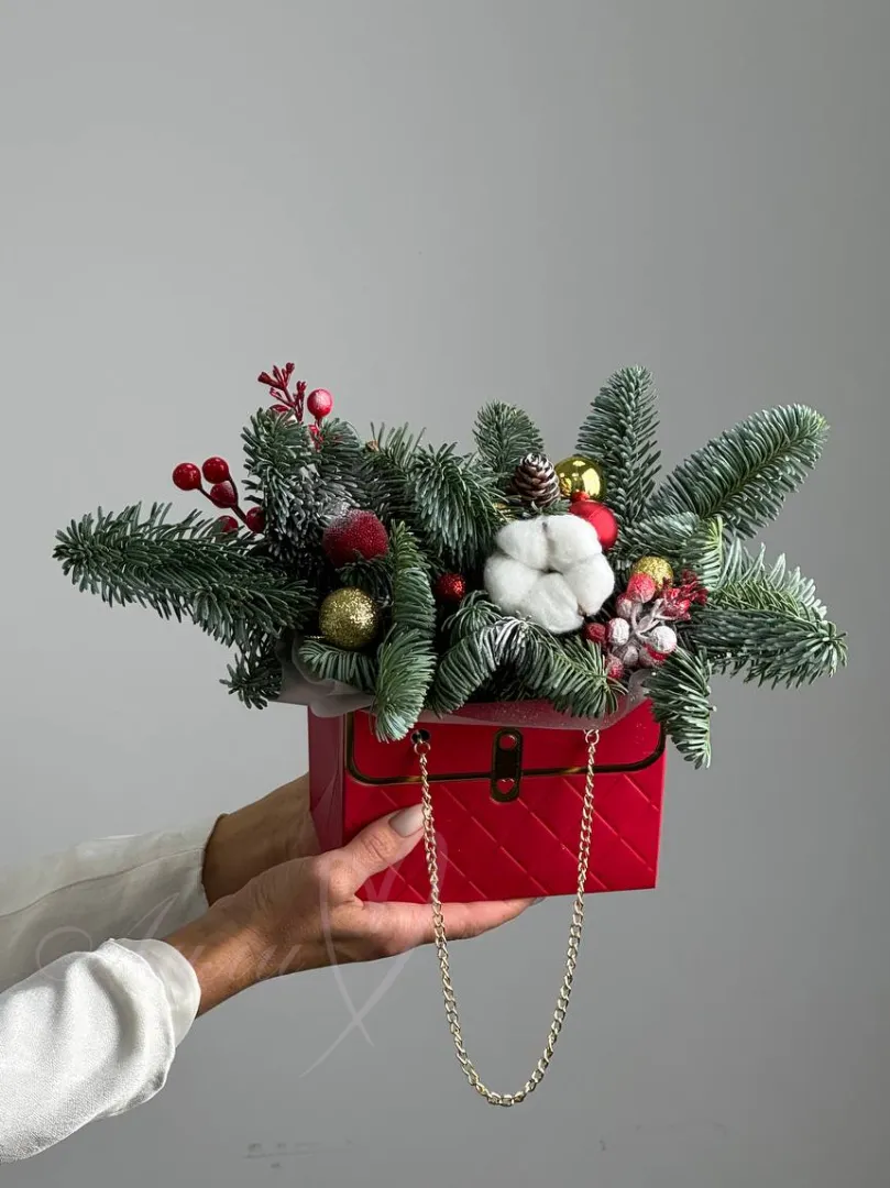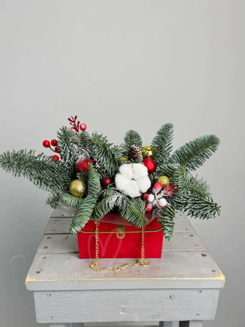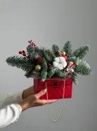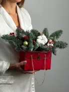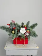 Эта яркая,новогодняя композиция украсит пространство для новогоднего уюта. Форма и дизайн букета делают его очень изысканным и элегантным подарком для особого человека.