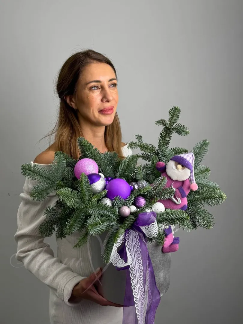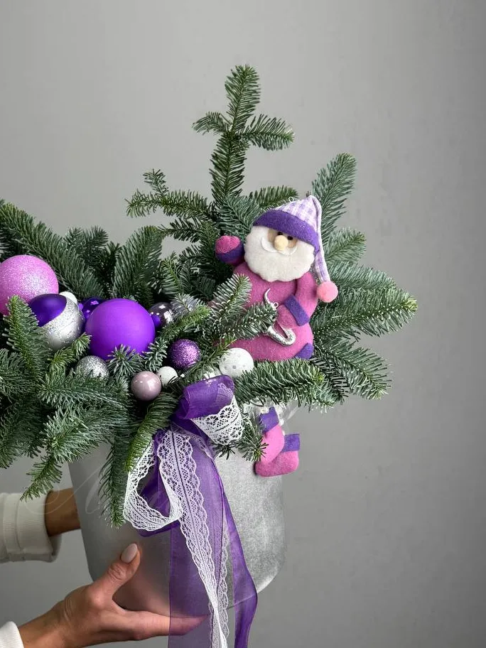 Композиция из натуральной пихты с новогодним декором.