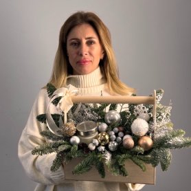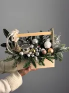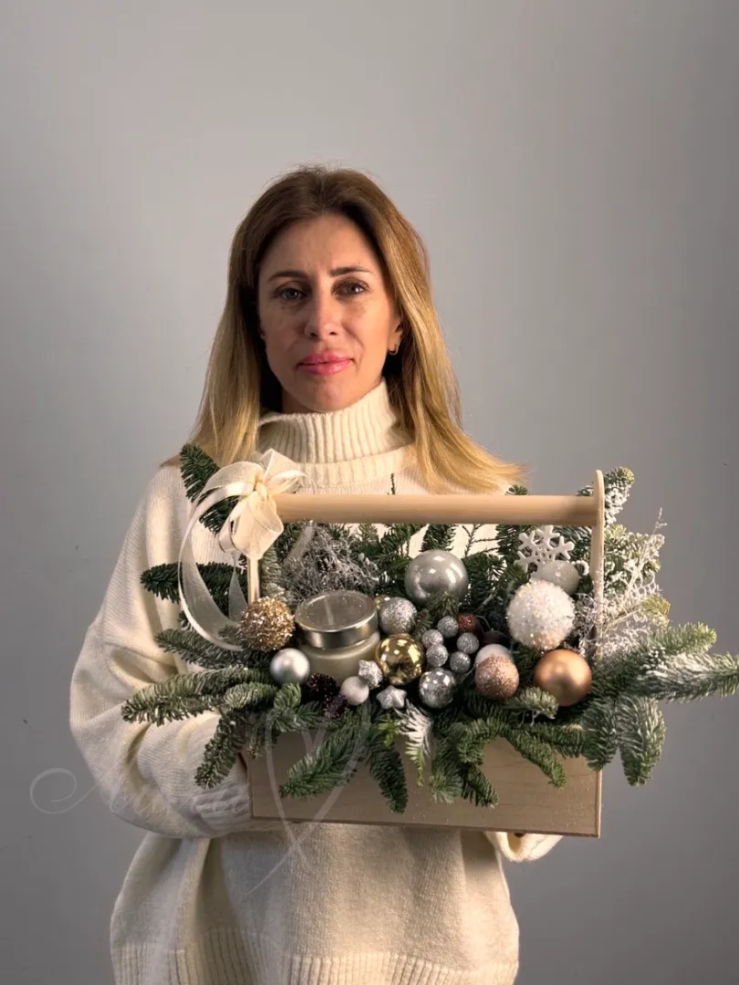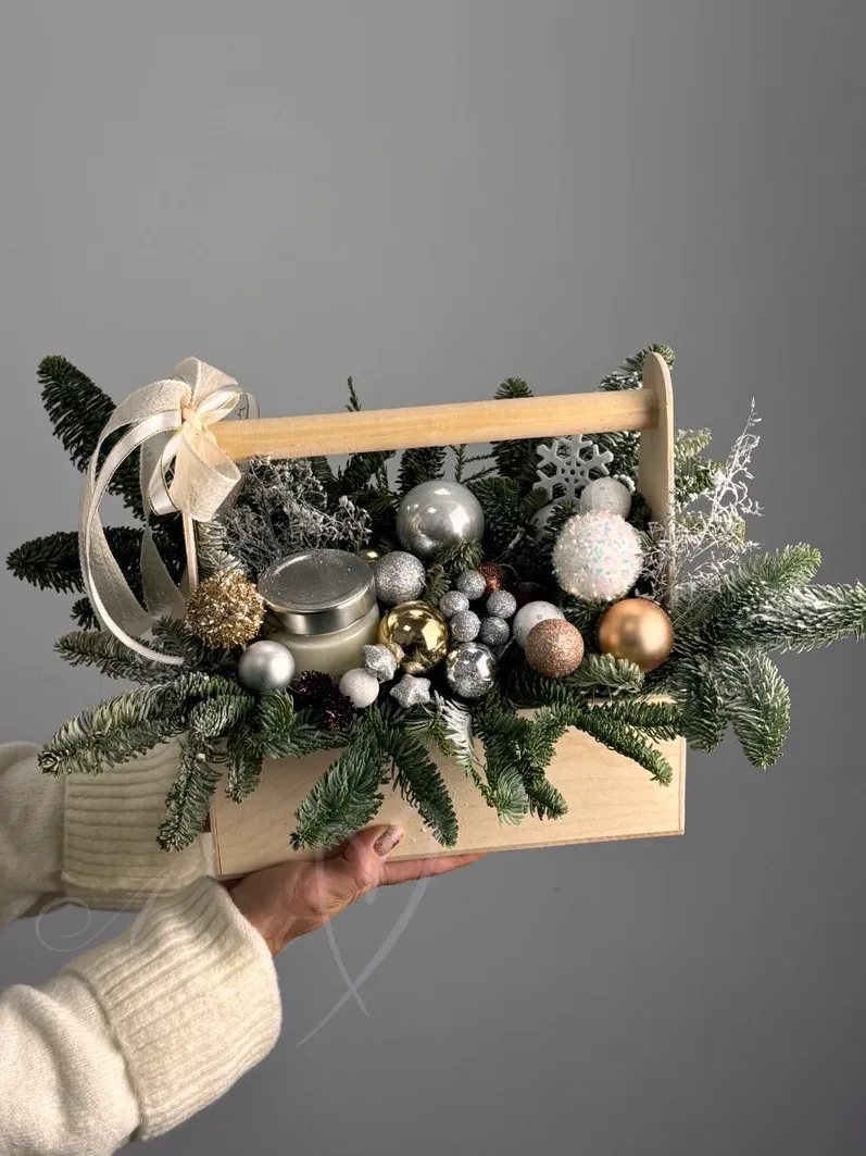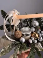 Композиция из натуральной пихты с новогодним декором и ароматизированной свечой.